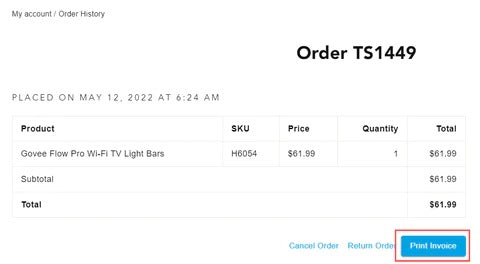 Please click “Print invoice”.